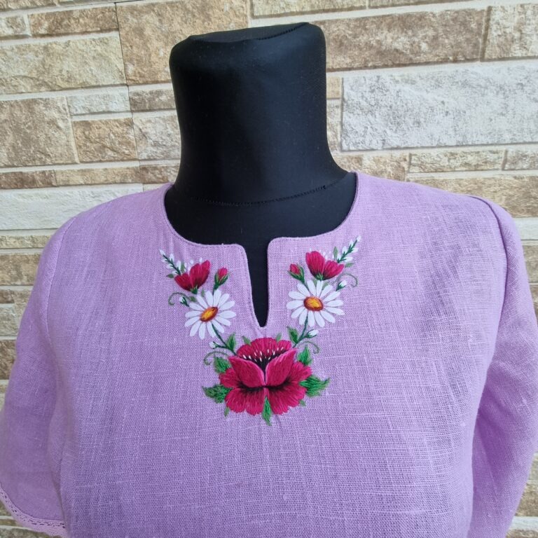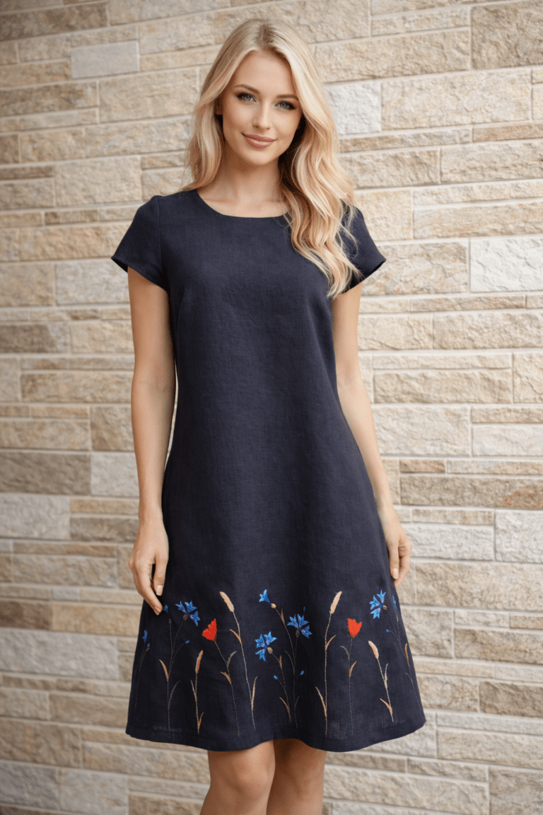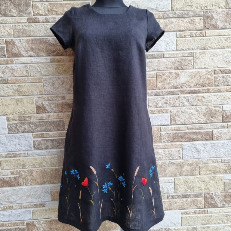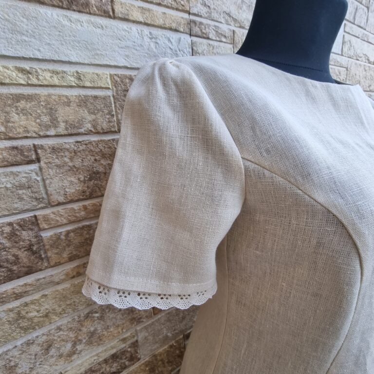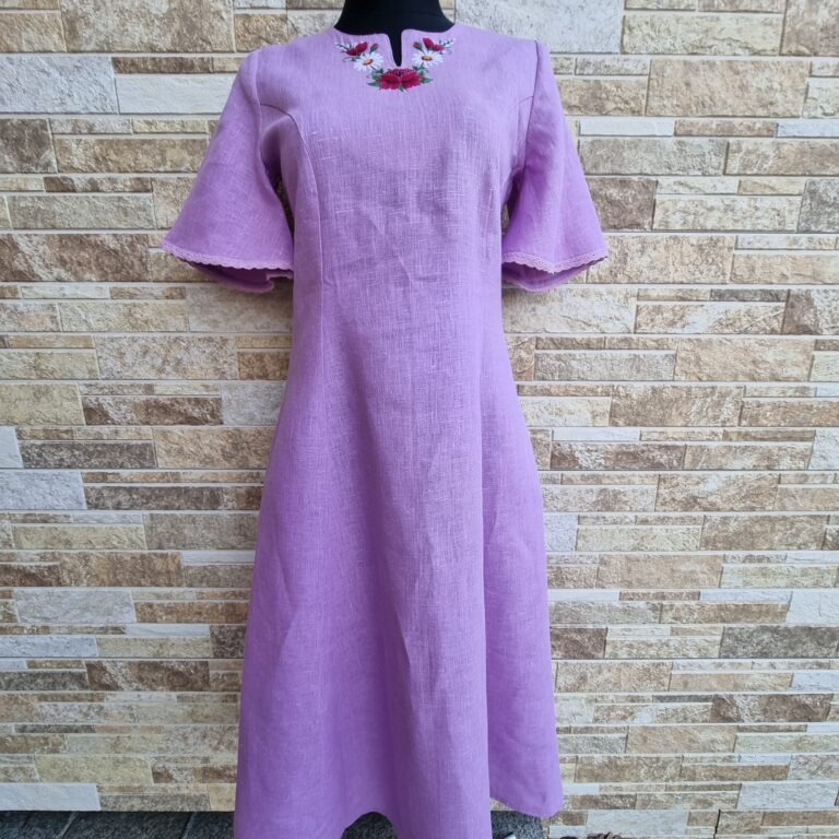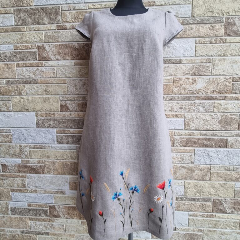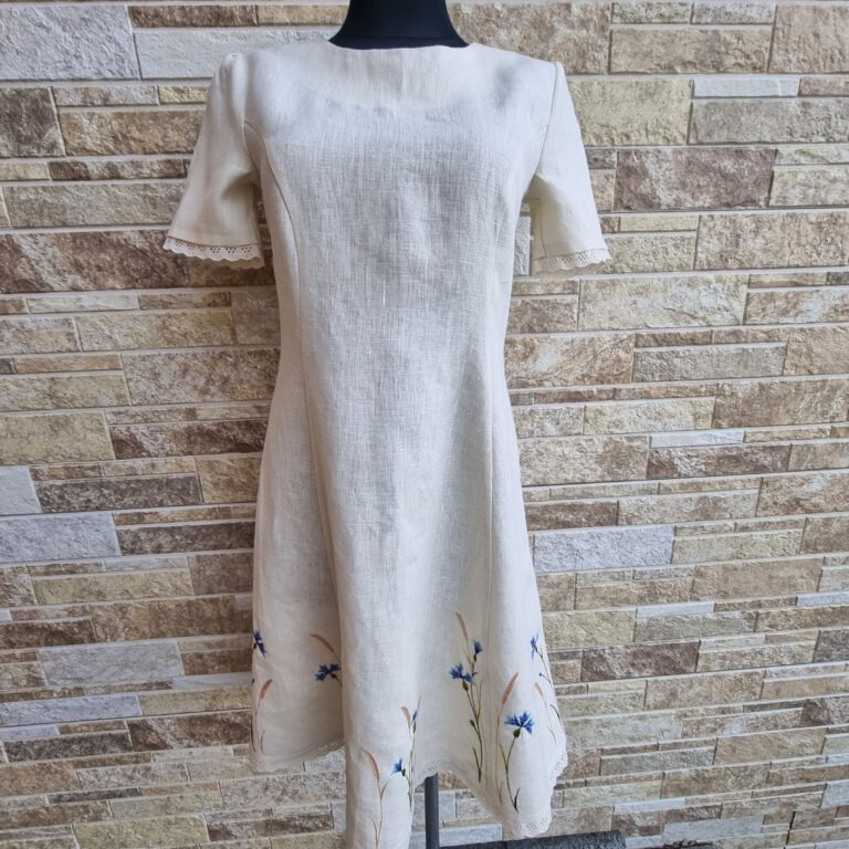 Naturaalne linane käsitöö tikandiga kleit suurus S