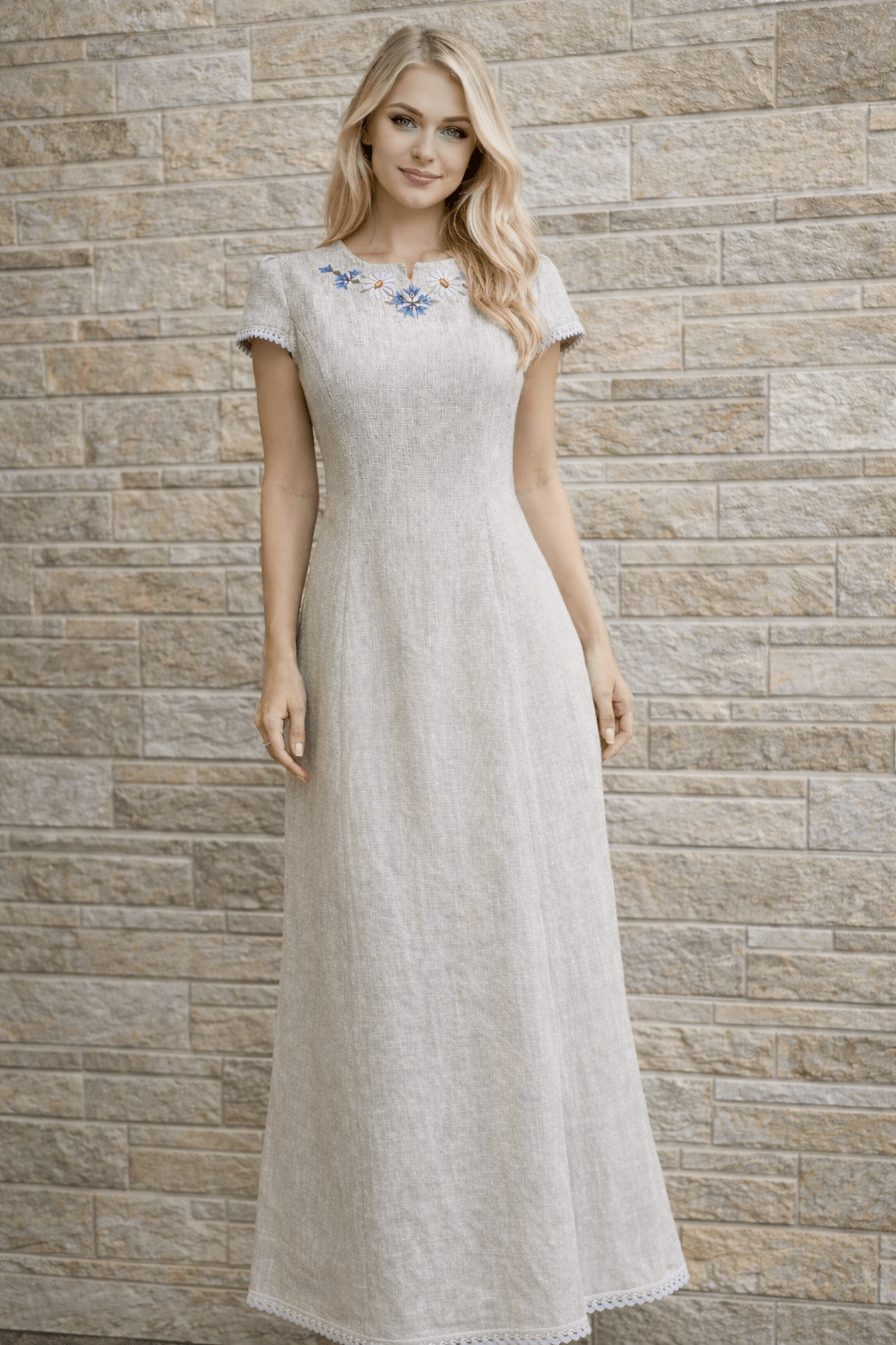 Hele naturaalne linane käsitöötikandiga kleit suurus S