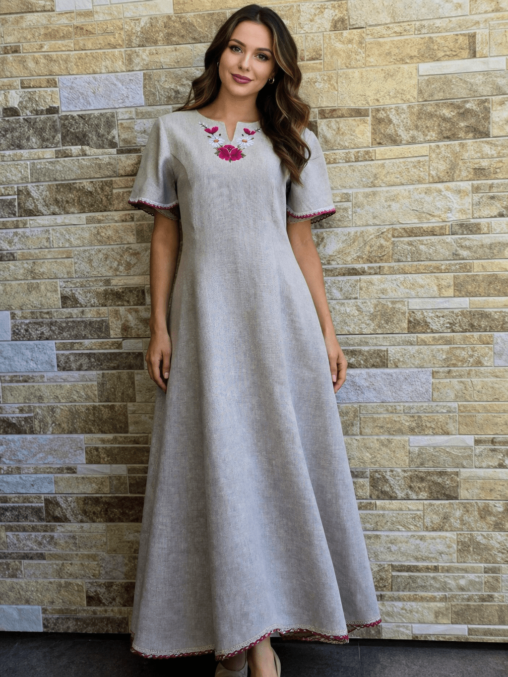 Naturaalne linane käsitsi tikitud kleit suurus M