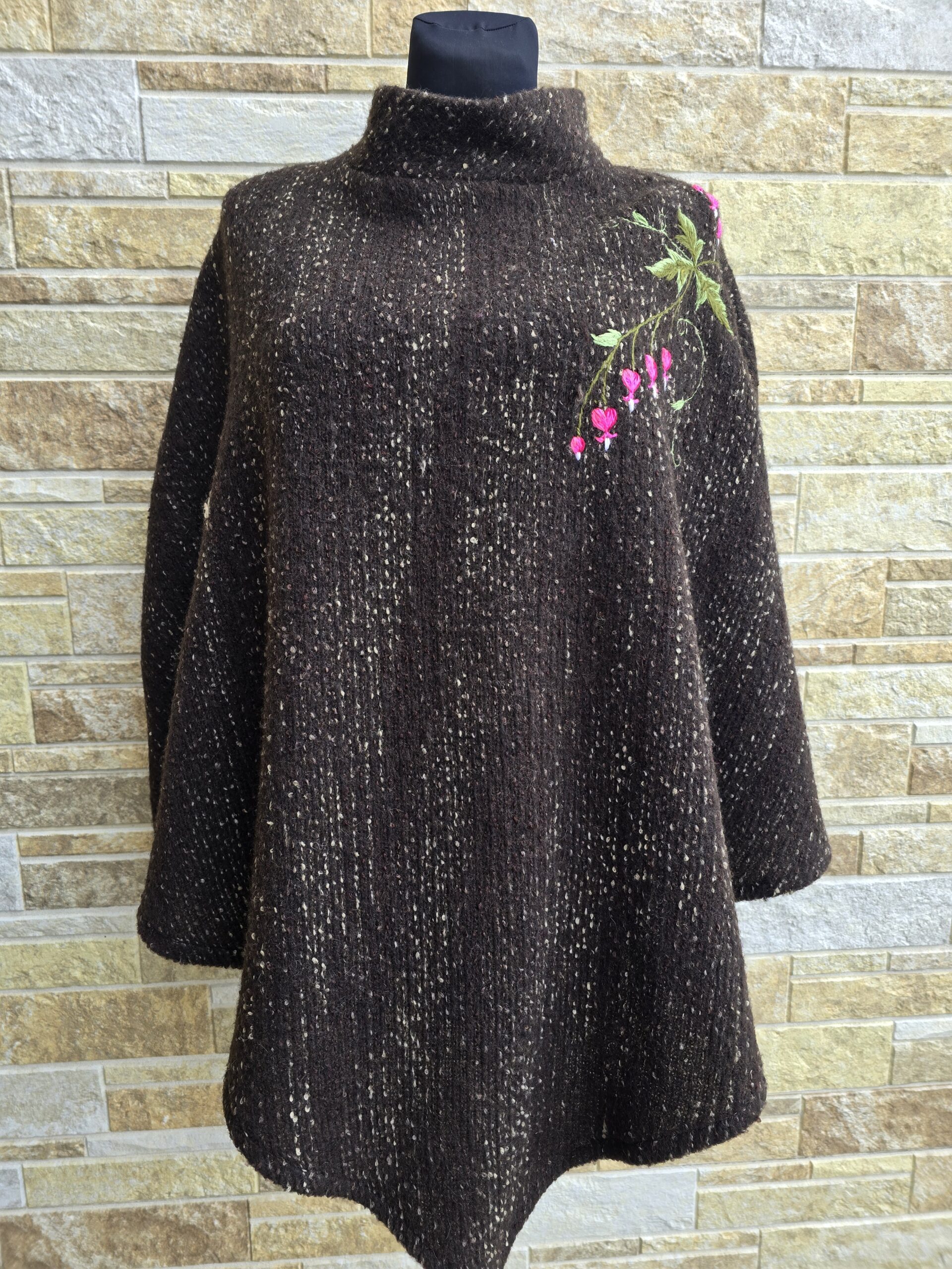 Pruun villane käsitöötikandiga kerge ja soe keep. Sobib suurustele M-XL