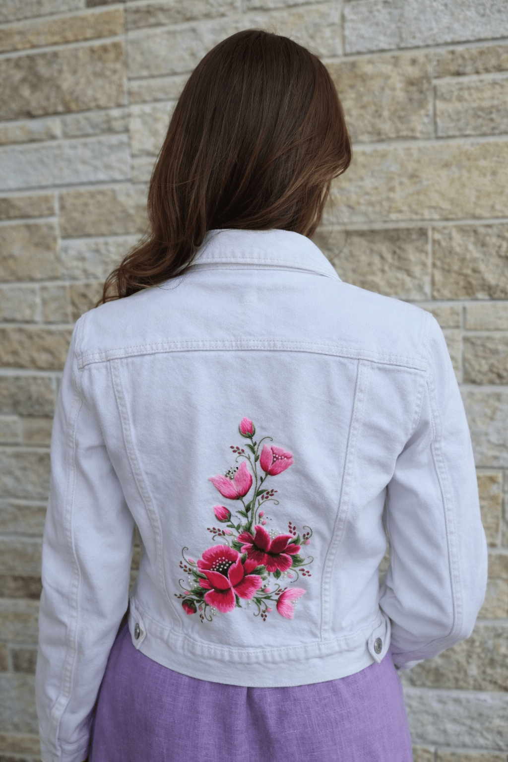 Tagi on kaunistatud kolme käsitöö tikandiga.